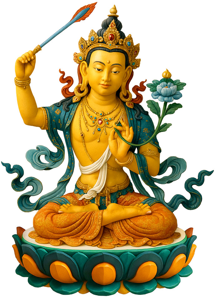 Manjushri Bodhisattva, also known simply as Manjushri, is one of the Four Great Bodhisattvas in Mahayana Buddhism, alongside Samantabhadra, Avalokiteshvara, and Kṣitigarbha. Revered as the embodiment of transcendent wisdom, Manjushri holds a central place in Buddhist teachings and iconography, symbolizing the enlightened insight that cuts through ignorance and delusion.