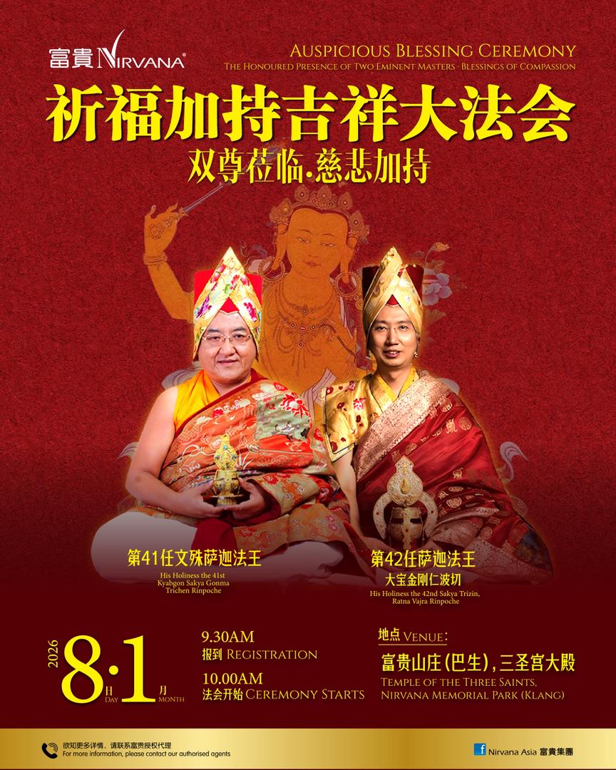 第41任萨迦法王——藏传佛教公认的文殊师利菩萨化身,千里迢迢莅临马来西亚,亲自主法!