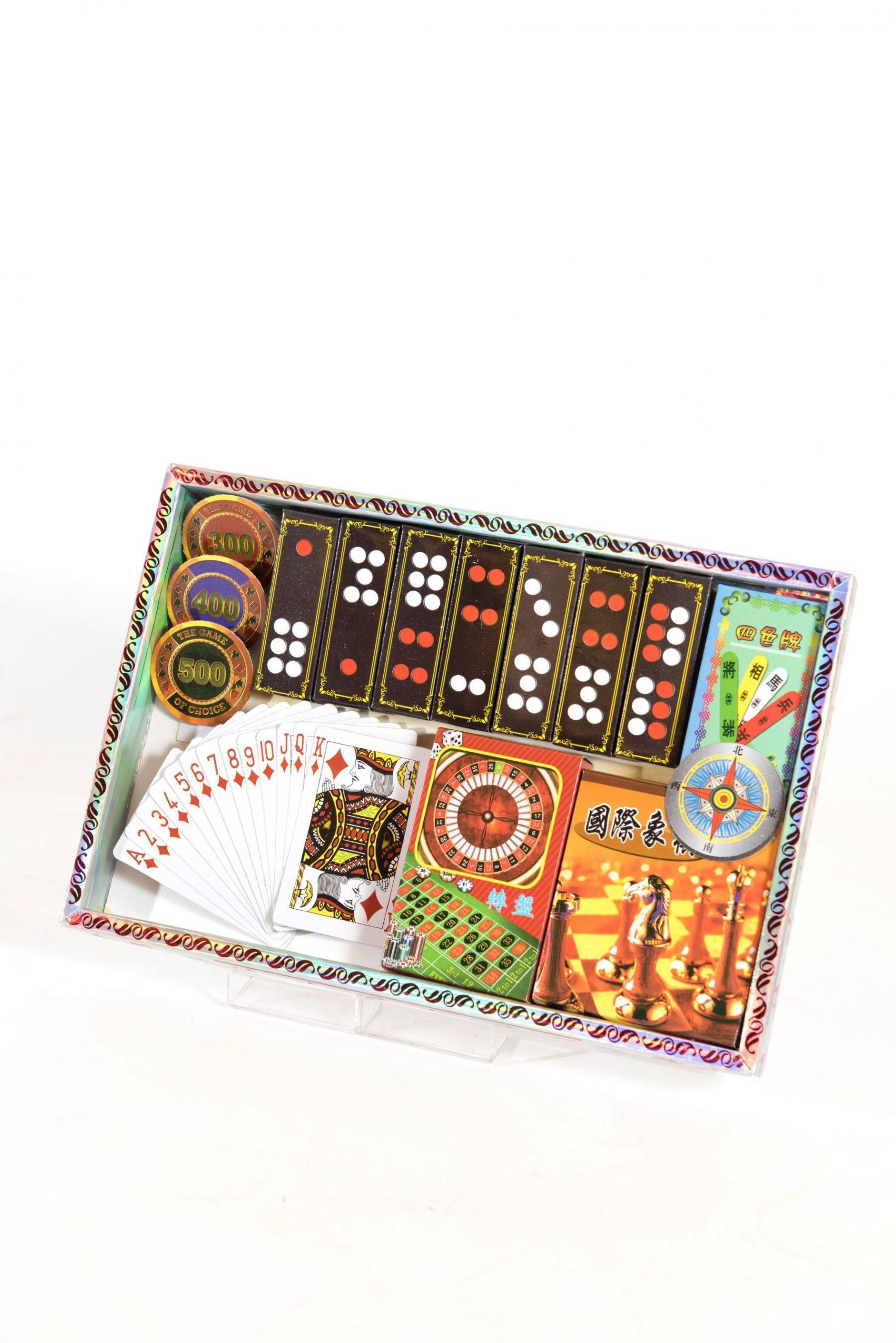 Pai Gow (Chinese Dominoes), Poker Cards, Mahjong Sets, Chips, Chess and Four-colour Cards are among the most mind-blogging games with addictive entertainment value. They are easily the bridges that forge a close bond among family members and friends.